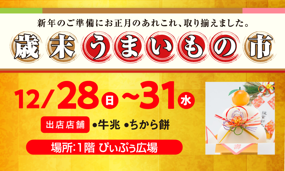 12月31日(水)は9:30~18:00の営業(飲食店は通常営業~18:00)となります。