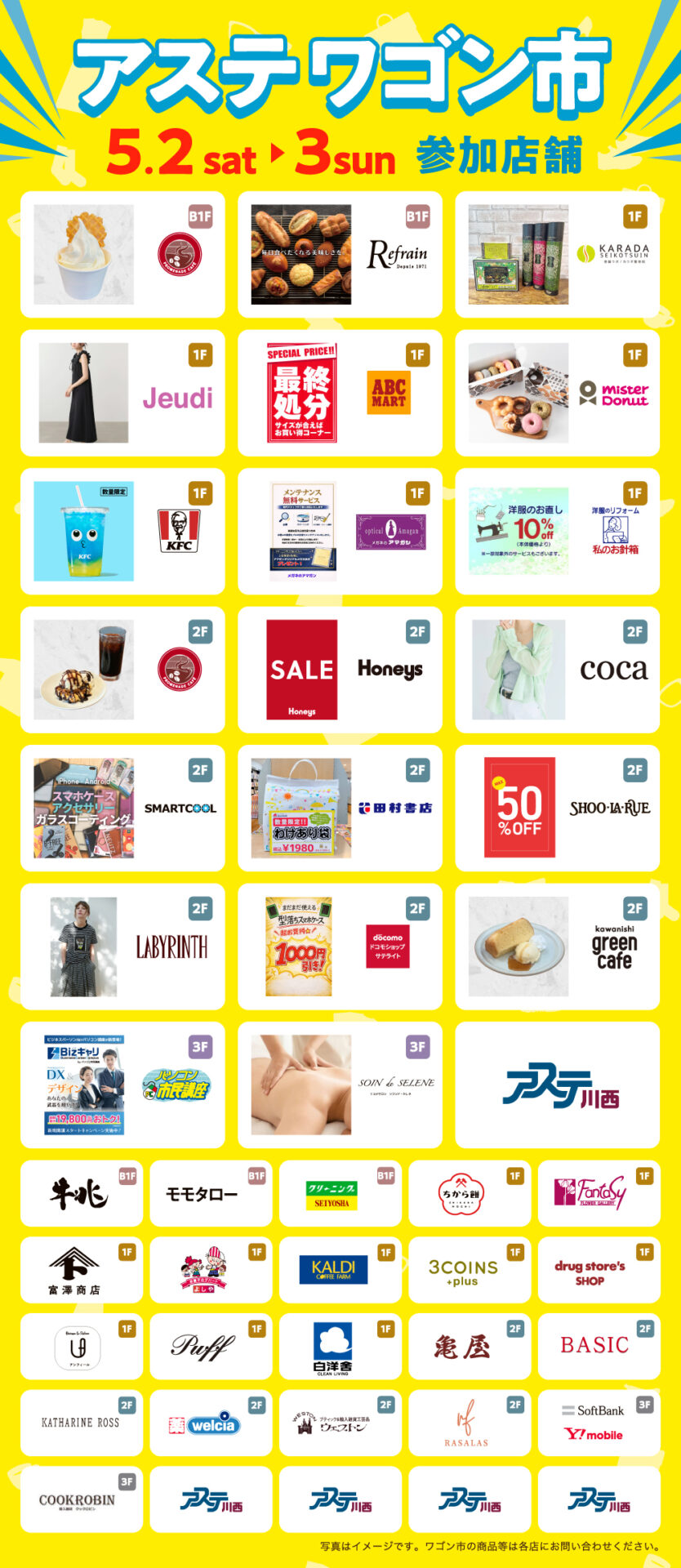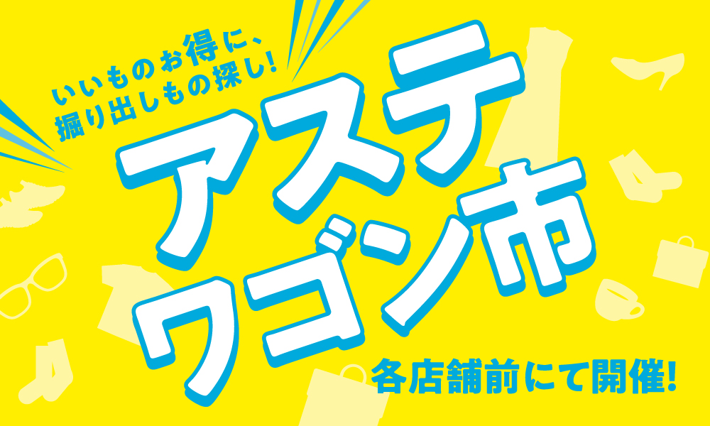 毎月第1土曜・日曜に各店舗前にて開催! 毎月第1土曜日・日曜日限定で、各店舗前に目玉商品やお得な商品満載のワゴンが登場します。 ぜひ店内を巡って掘り出し物を見つけてみませんか。 5/2(土)~3(日・祝)