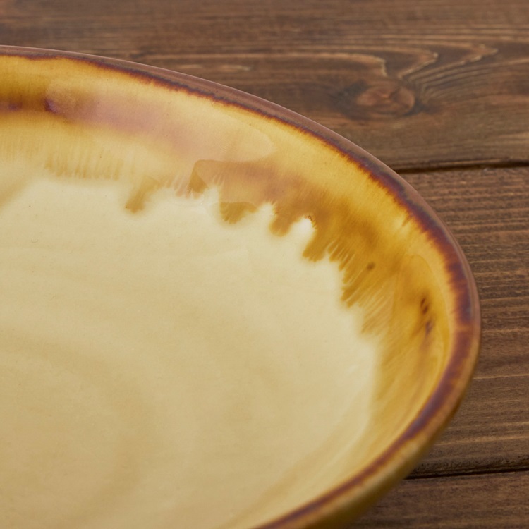 筆で縁に手描きで色をつけ、流れる釉薬を被せて滲む表現を施したシリーズです。