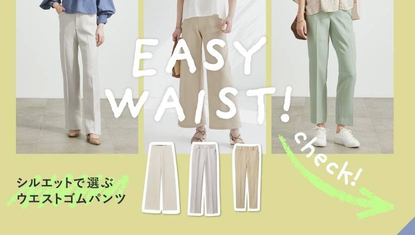 最近のトレンドは、なんといっても「ウエストゴム」