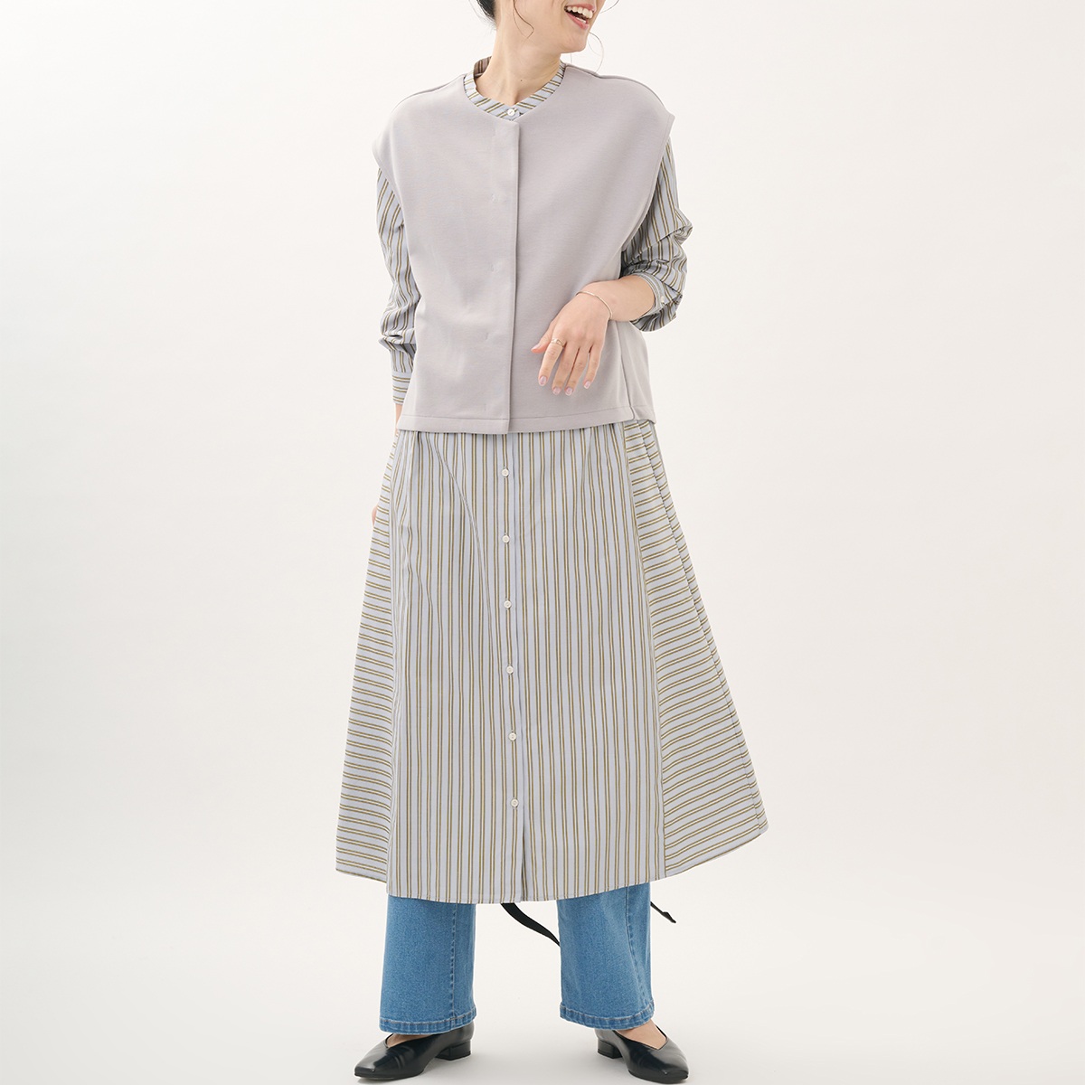 今回は、羽織っても可愛い軽やかに着れる「ストライプシャツワンピース」をご紹介いたします!