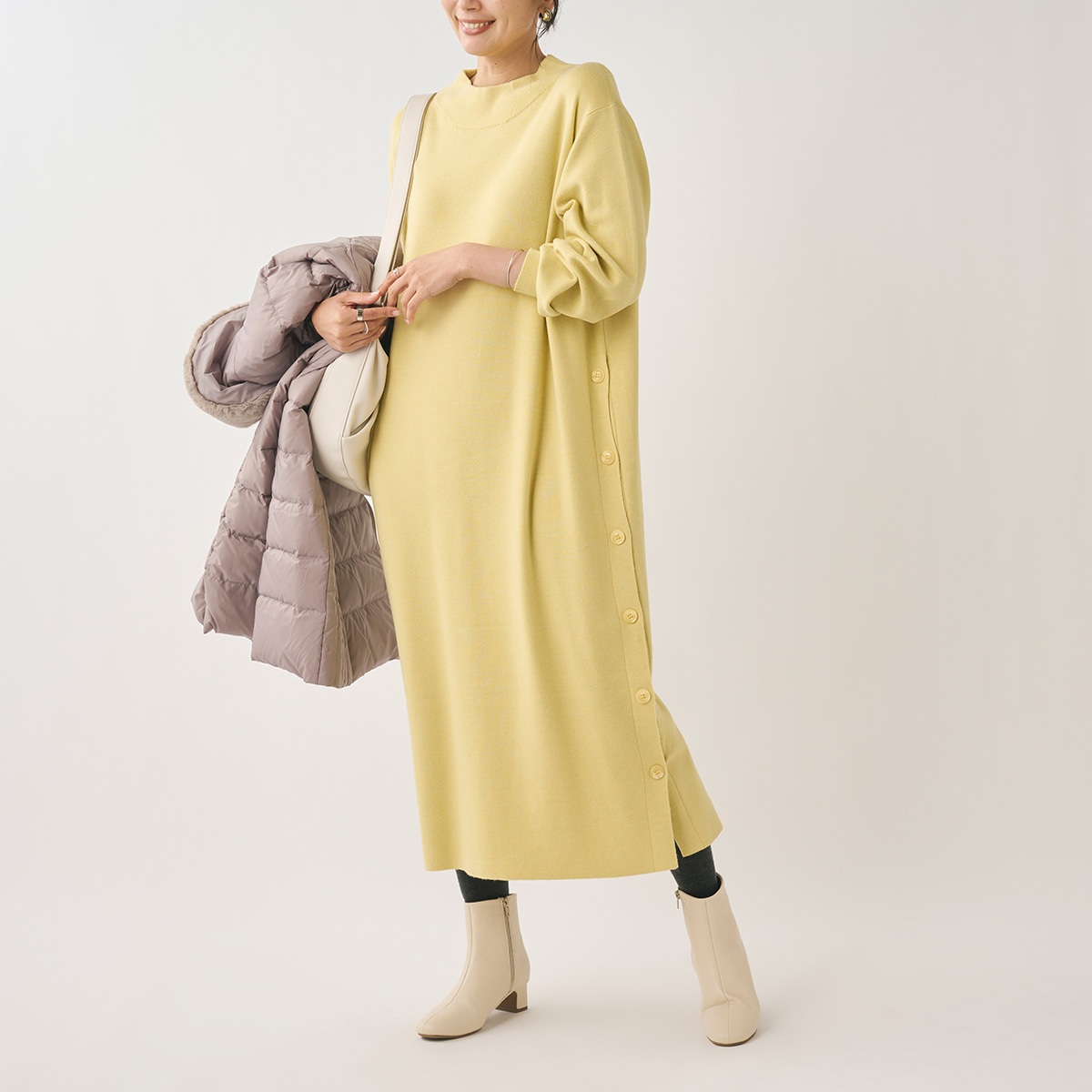 👗サイドボタンがアクセント!1枚でスッキリ着こなす優秀ニットワンピース👗