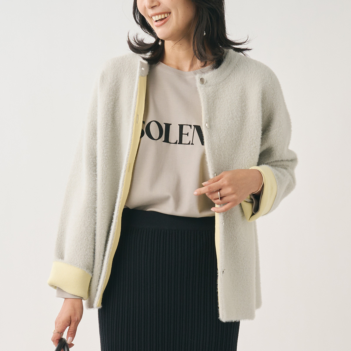 今回は、ダブルフェイスバイカラーニットカーデをご紹介いたします!
