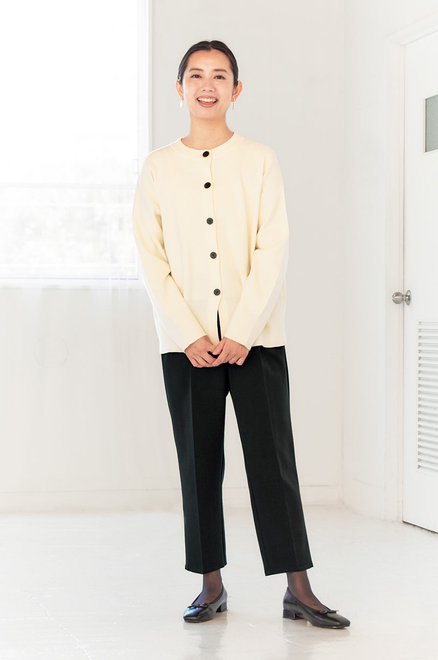 パンツでもスカートでも、どんなボトムとも相性がよく、着回し力抜群なシルエットなので、色違いで揃えたくなるアイテムです。
