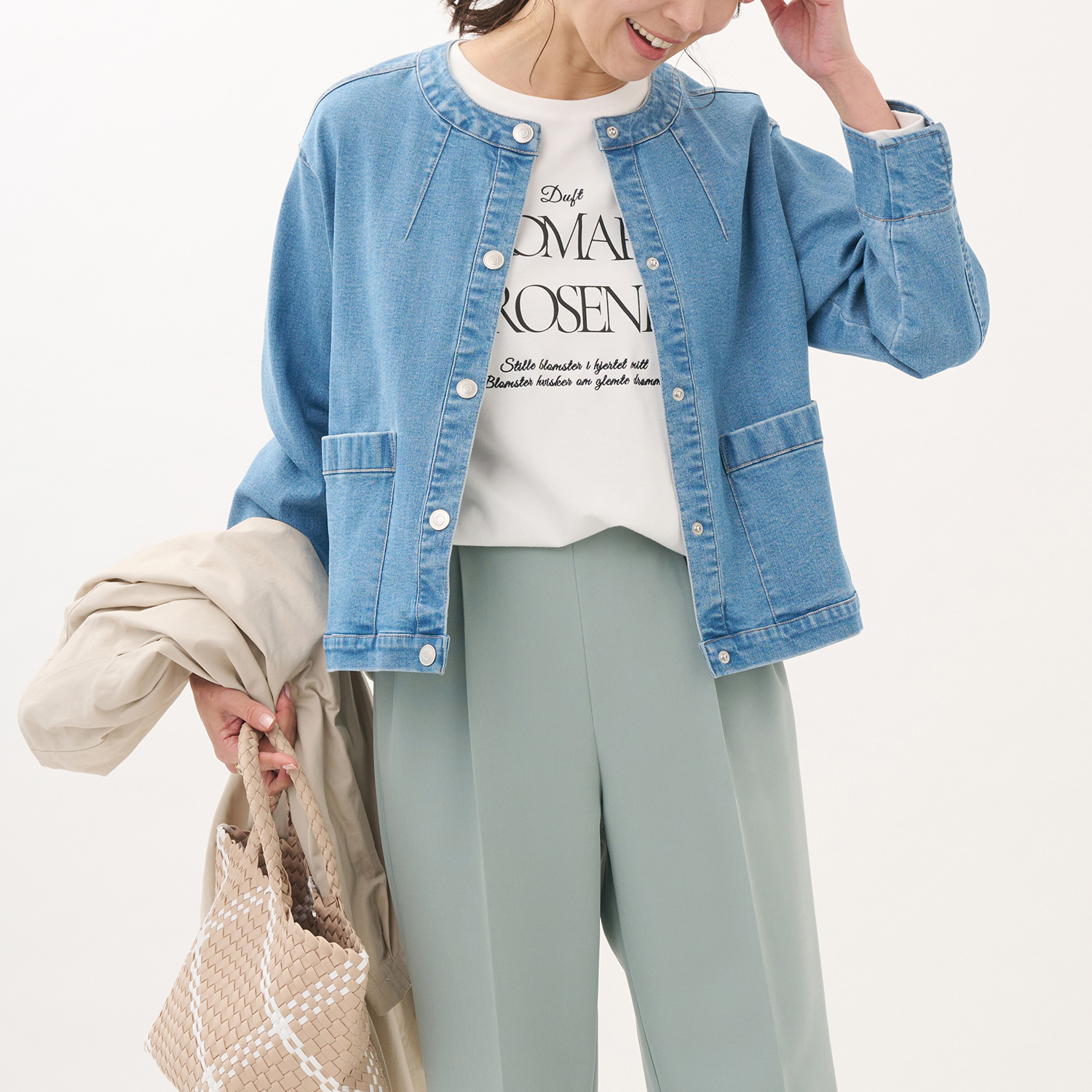 こんにちは!2階KEYUCAです。 今回は、ストレッチデニムノーカラージャケットをご紹介いたします。 ストレッチデニムノーカラージャケット ¥6,990 (税込 ¥7,689……