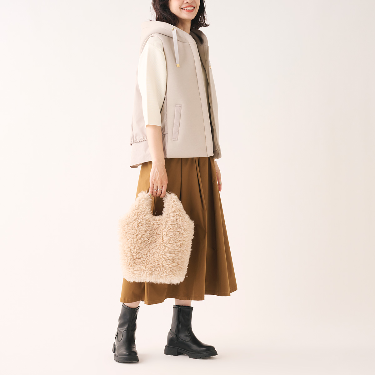 👗小顔効果も!秋の着こなしを格上げするコンビ素材の優秀ベスト👗