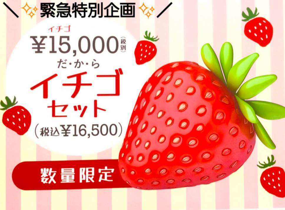 #イチゴ福袋 販売スタート 日頃の感謝を込めて「イチゴ福袋」をご用意しました!その名の通り【15,000円(+税)】の #数量限定 スペシャル企画です 気になる中身は ①【……